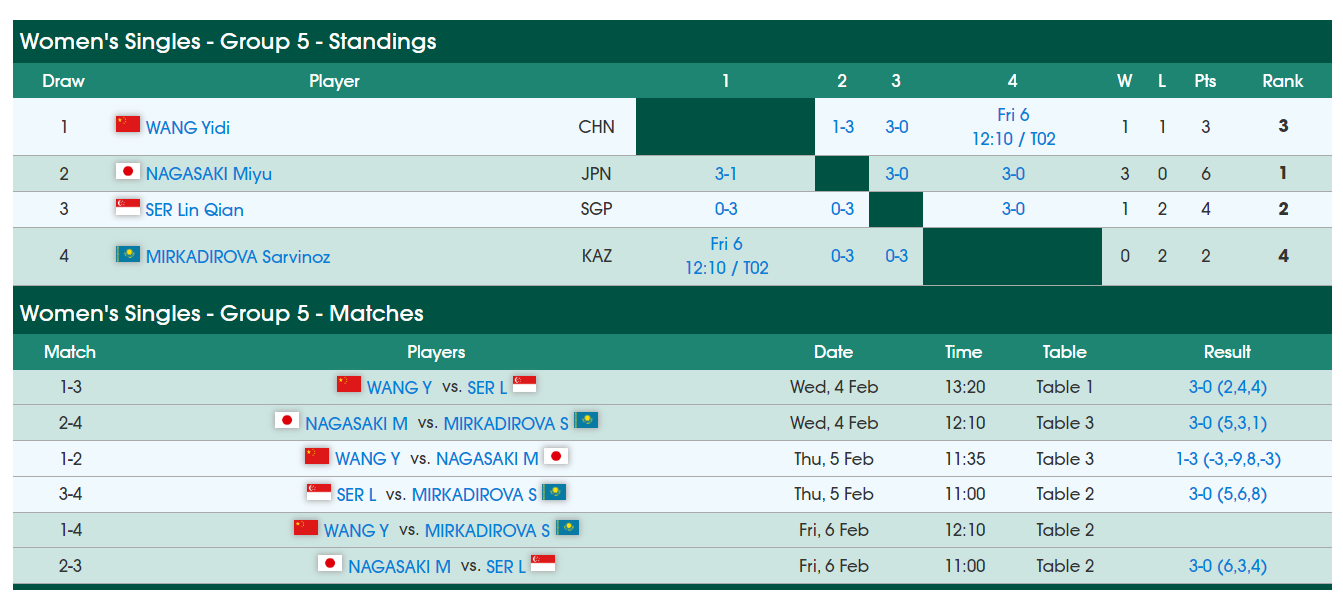 以小组第二晋级16强!王艺迪三局只让对手拿10分 长崎美柚三连胜